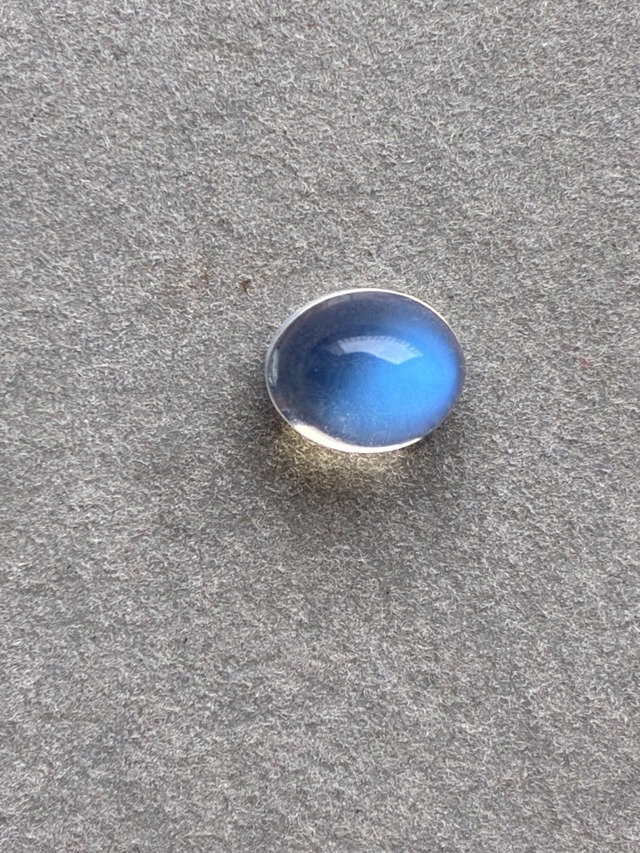 オーソクレース・ムーンストーンのルースを仕入れることが出来ました。 全部で9個あります。 時間をかけて肉眼での「透明度の高さ、シラー(ブルーの輝き)の強さ」で選びました。 今回のルースはムーンストーンの代名詞「乳白色」に近いです。 写真の下地のグレーが透けて見えますので、透明度のある乳白色。 石の中は異なる成分が薄い層となり、ミルフィーユ状で出来ています。 成分の層が引っ張られ、細かい亀裂のようなものが入っています。 「ミミズ」と呼ばれ、クラックや内包物にも見えます。 オーソクレーズ主体のムーンストーンの特徴です。 また、内包物が入りやすい石なので、拡大すると何かしらあります。 多少のインクルージョンがある石、と思って頂けると有り難いです。 写真はスマホの通常と拡大機能(6倍程度)を使って撮影しました。 念の為、目視や10倍ルーペで確認できる範囲の情報を下記に掲載しています。 見落としがあるかもしれませんが「見た目の透明度・青いシラー」には影響ない範囲です。 鉱物学的には フェルドスパー(珪酸塩鉱物の総称)の一種です。 日本語では長石です。 「ムーンストーン」という宝石名(流通名)はスリランカの島の西南部に位置するミーティアゴダの鉱山から採掘された「オーソクレーズを主体とした長石」対して名付けられました。 現在は掘り尽くされて閉山しています。 元祖ムーンストーン、本家ムーンストーン。 ブルームーンストーンとも呼ばれています。 透明な石に青く光る幻想的な石。 「ブルー」を強調したくなるのも頷けます。 鑑別では「オーソクレース・ムーンストーン」と表記されます。 現在市場に出ているムーンストーンは「ペリステライト」という宝石名のもの。 鑑別に出すと「宝石名:ペリステライト」となります。 オーソクレーズの青い光は、柔らかくボーっとした感じ。 ペリステライトの青い光はパキッと強く見えます。 どちらも美しい石です。 今回仕入れた石の産地についてですが、複数の鑑別機関から「スリランカ産ではない」との答えを頂きました。 ただムーンストーンの産地特定は難しいそうです。 「産地不明・スリランカ産ではない」石ですが、 鑑別書の通り「オーソクレース・ムーンストーン」 本来の(本当の?)ムーンストーンです。 【石の情報】 上から見ると綺麗なカボションですが、 トップのカーブがなだらかな山から急な斜面のように均一ではありません。 トップにごく小さな黒点。 小さな気泡のような内包物が多いですが、見た目のシラーには影響ありません。 オーバルカボションカット 2.682ct 縦×横×高さ(約) 9.7㎜×7.8㎜×5.2㎜ ◉鑑別書付 ※天然の石のため、色味や模様は写真と多少異なる場合があります。 モニターによっても変わります。 ※形や内容物など、完璧を求める方はご遠慮下さい。 ※ご購入確定後のキャンセルは出来ません。 ※石の効果は個人差があります。あくまで参考としてご理解ください。 硬度は弱くはないですが、ぶつかると欠けることもあります。 ネックレスやピアスなどにするのがお勧めです。