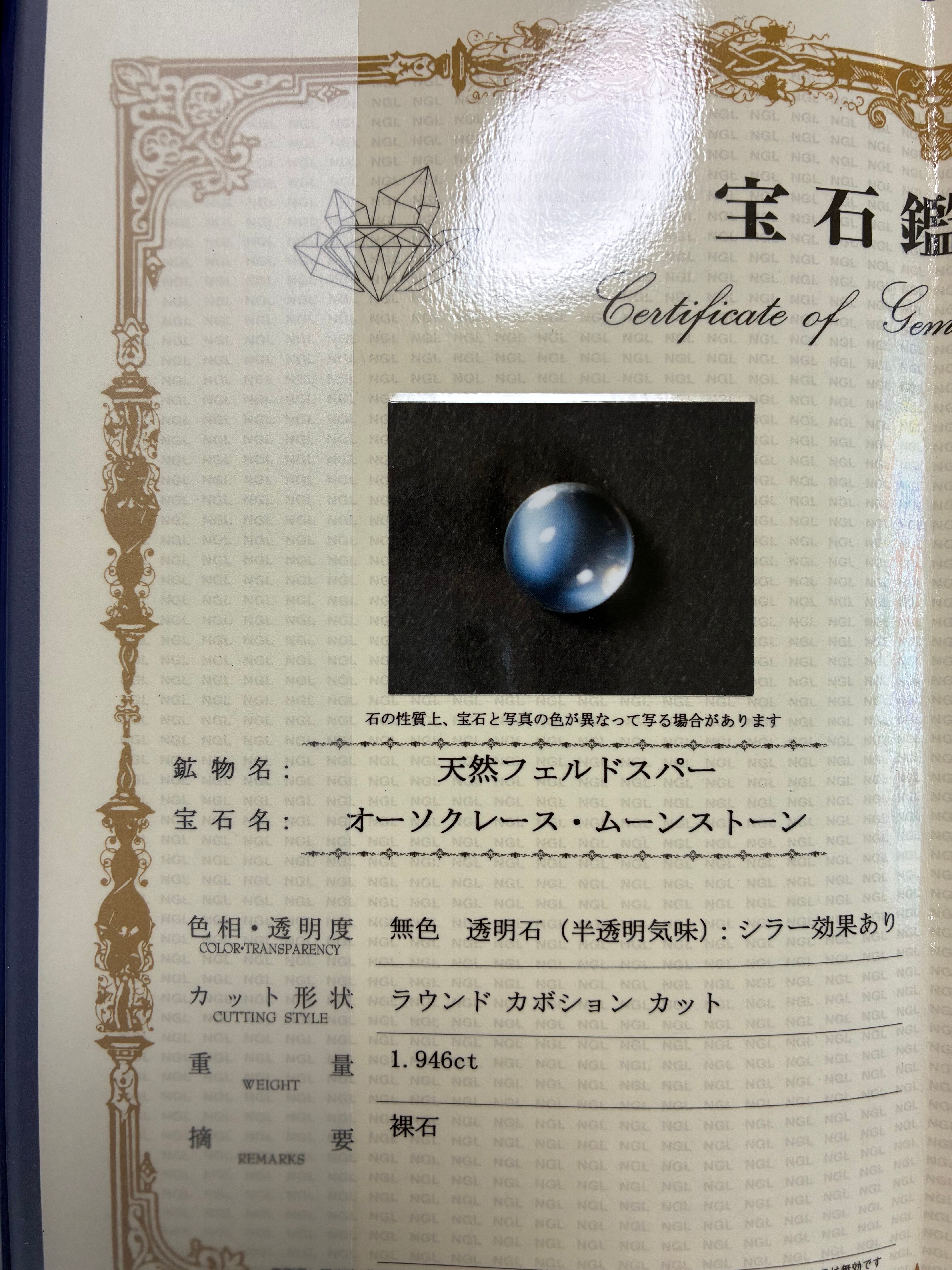 鑑別書の通り「オーソクレース・ムーンストーン」